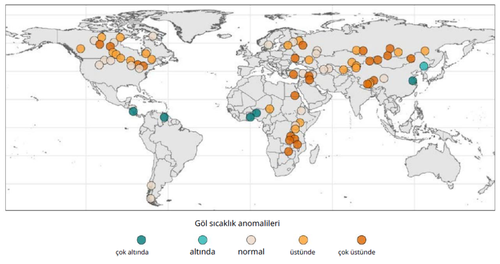 Bunun yanında, Temmuz 2024 ölçümleri göl sıcaklıklarının tehlikeli şekilde yükseldiğini gösterdi. Dünyada incelenen 75 gölün neredeyse tamamı normalin üstünde sıcaklığa ulaştı. Afrika’daki göller de bundan etkilendi. Uzmanlara göre, bu durum su ekosistemlerini bozuyor, balık popülasyonlarını düşürüyor ve geçim kaynağı göllere bağlı milyonlarca insanın hayatını risk altına sokuyor.