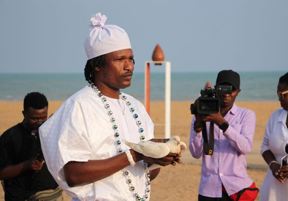 Katılımcılar, eski bir köle açık artırma alanı olan Place aux Encheres’ten başlayarak yaklaşık iki kilometrelik bir yürüyüşle, Amerika’ya zorla götürülen Afrikalıların sembolik çıkış noktası kabul edilen Dönüşü Olmayan Kapı’ya ulaştı. Törende barışı simgeleyen beyaz güvercinler bırakıldı.