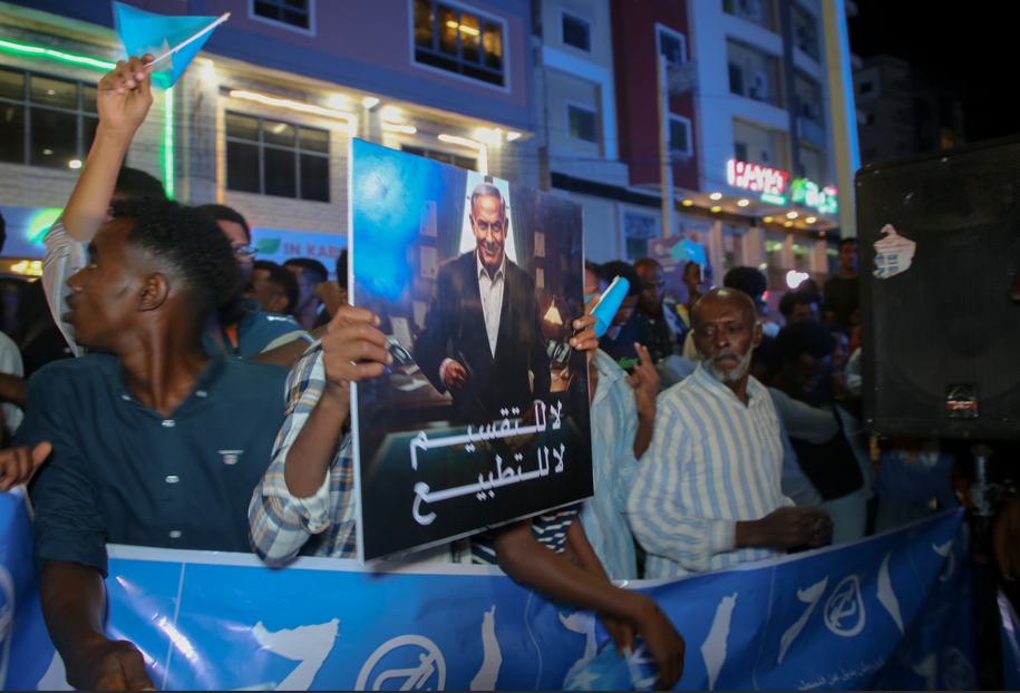 İsrail’in, Somali’nin kuzeyinde tek taraflı bağımsızlık ilan eden Somaliland’i tanıması, Somali’nin başkenti Mogadişu’da protesto edildi. Yüzlerce kişi başkentteki Mogadişu Stadyumu’nda bir araya gelerek İsrail’in kararına tepki gösterdi. Gösteriye din adamları, kanaat önderleri, halk ozanları ve farklı kesimlerden çok sayıda kişi katıldı.