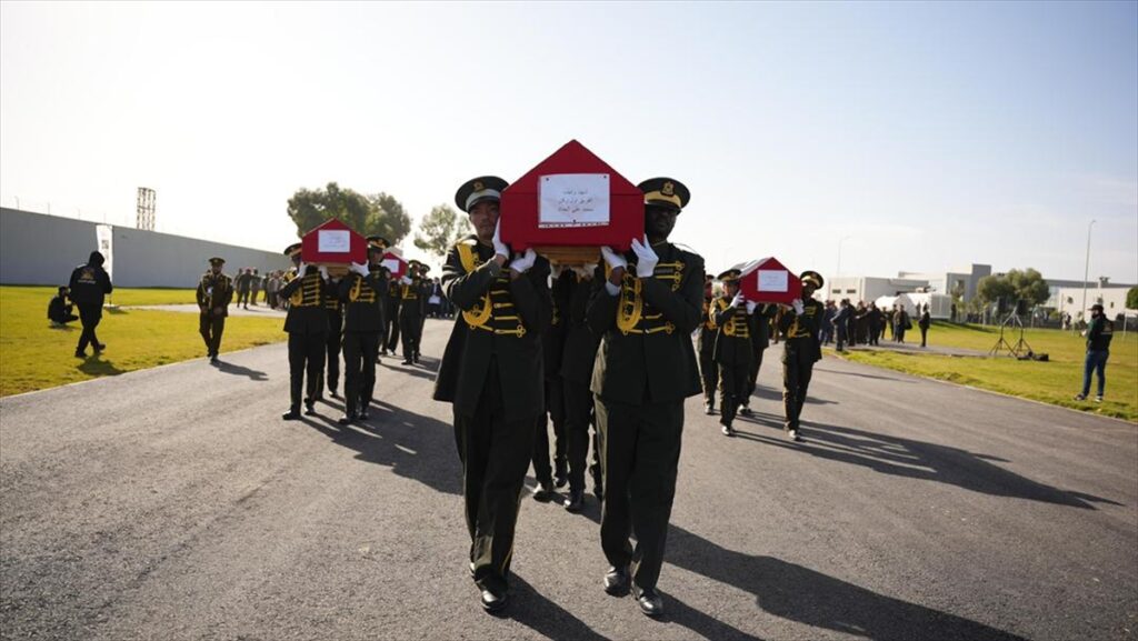 Ankara’da meydana gelen uçak kazasında hayatını kaybeden Libya askeri heyetine ait naaşlar, Libya’nın başkenti Trablus’a ulaştırıldı. Trablus Uluslararası Havalimanı’nda düzenlenen resmi törende, kazada yaşamını yitiren askerler için askeri ve devlet protokolünün katılımıyla anma gerçekleştirildi. Törene, Libya Başkanlık Konseyi Başkanı Muhammed el-Menfi, Libya Başbakanı Abdulhamid Dibeybe ile çok sayıda üst düzey askeri ve sivil yetkili katıldı. Naaşlar, tören alanına askeri birlikler eşliğinde getirildi.