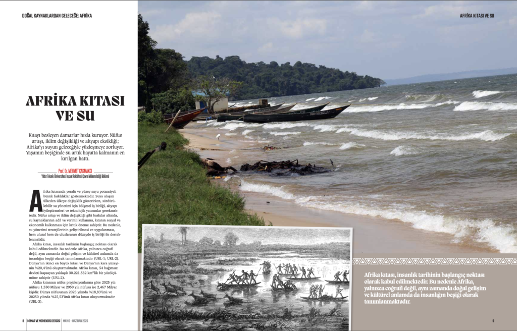 Dergide, Prof. Dr. Mehmet Çakmakcı’nın Afrika kıtasının su kaynaklarını ele aldığı “Afrika Kıtası ve Su” başlıklı makalesi, bölgenin su yönetimi ve sürdürülebilir kalkınma açısından taşıdığı önemi gözler önüne seriyor. Prof. Dr. Ahmet Kavas ise “Afrika’nın Tahılı Dünyayı Besler” yazısında kıtanın tarımsal üretim potansiyelini ve küresel gıda güvenliğindeki rolünü detaylandırıyor.